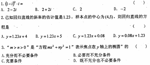 山东省曲师大附中09-10学年高二下学期期中考试(数学文)扫描版