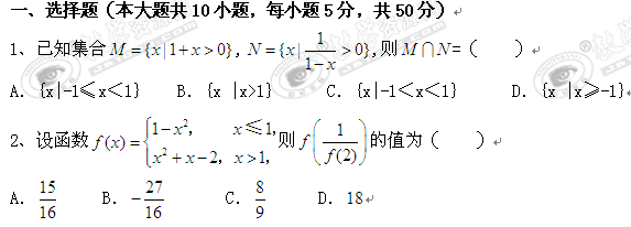 广东省中山市实验高中2011届高三上学期十月月考(数学)