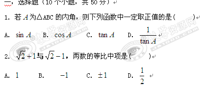 广东省中山一中10-11学年高二上学期第一次段考(数学文)