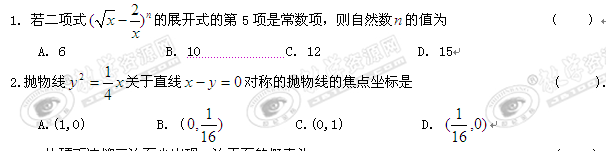 浙江省鄞州高级中学10-11学年高二12月月考试卷(数学理)