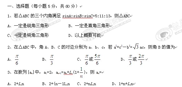 河南省许昌高中10-11学年高二上学期12月份考试(数学)