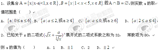 广东省中山市实验高中2011届高三12月月考(数学理)