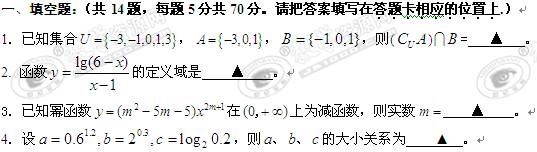 江苏省宿迁中学10-11学年高一上学期第二次调研测试(数学)