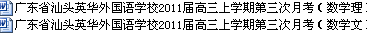 广东省汕头英华外国语学校2011届高三上学期第三次月考(数学文理卷)