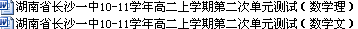湖南省长沙一中10-11学年高二上学期第二次单元测试(数学文理卷)