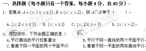 广东省中山一中10-11学年高一上学期第三次段考(数学)