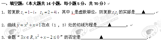 江苏省淮阴中学10-11学年高二上学期阶段测试(数学)