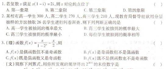 辽宁省本溪市第一中学2011届高三上学期第三次摸底考试(数学)扫描版