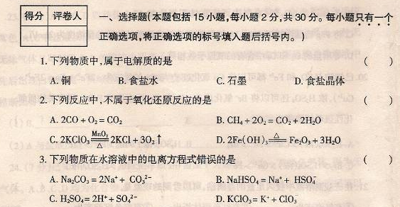 河南省濮阳市10—11学年度高一上学期期未考试(化学)扫描版