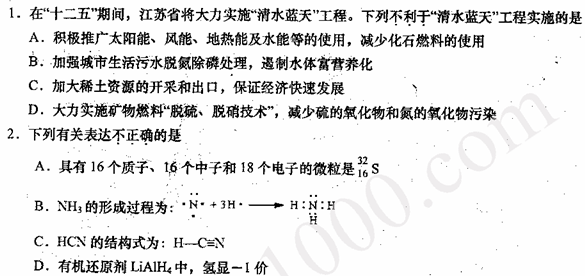 江苏省盐城市2011届高三上学期期末调研(化学)(扫描版含答案)