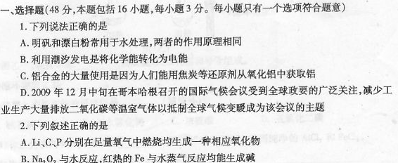 河南省信阳市高中2011届高三第二次调研考试(化学)扫描版
