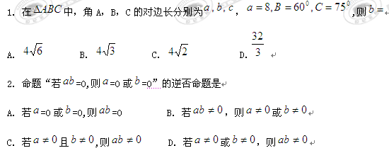 广东省东莞市教育局教研室10-11学年高二上学期教学质量自查试题(数学文A)