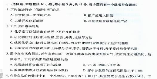 福建省厦门市10-11学年度高一上期期末质量检查(化学)扫描版