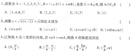内蒙古呼和浩特市2011届高三第一次调研考试(数学文)