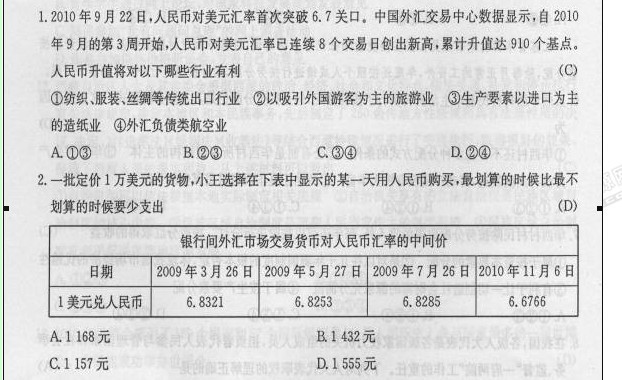 湖南省长郡中学2011届高三第五次月考(政治)扫描版