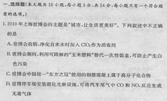 湖南省雅礼中学2011届高三第三次月考(化学)扫描版