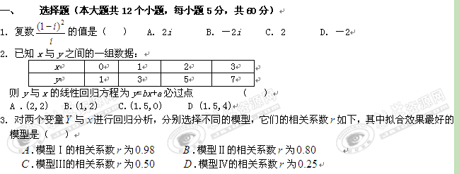 河南省巩义二中10-11学年高二下学期3月段考试卷(数学文)