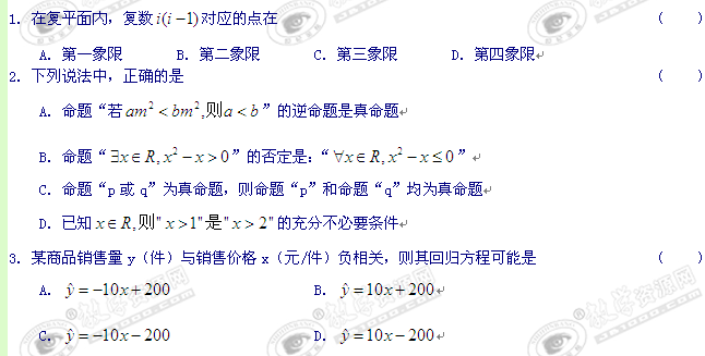 山西省太原五中2011届高三3月月考试题(数学理)缺答案