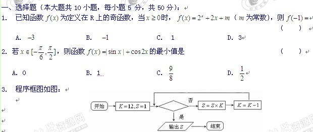 浙江省杭州高中2011届高三第七次月考试题部分(数学理)缺答案