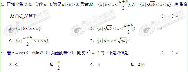 河南省安阳鹤壁濮阳三市2011高三第二次调研考试(数学理)无答案