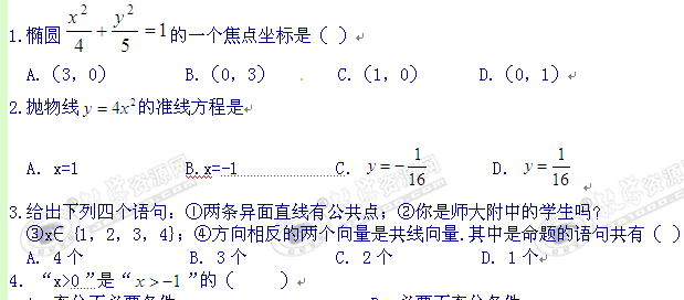 山西省孝义三中10-11学年高二上学期第二次月考试题(数学文)