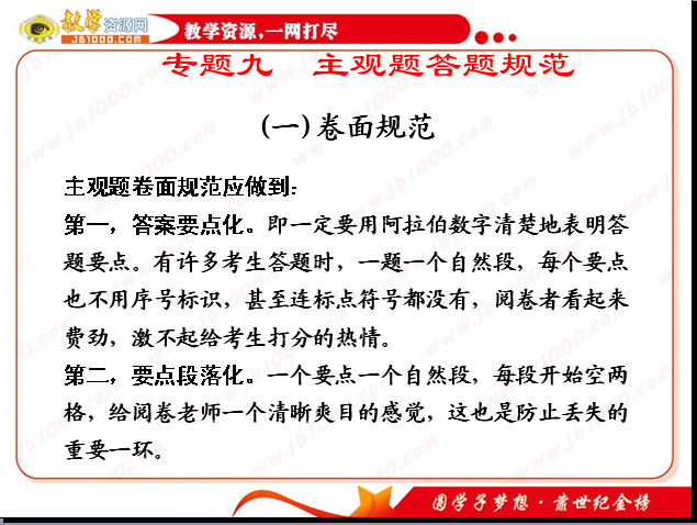 2011届高三历史二轮复习课件:主观题答题规范 (一)卷面规范(新课标版)