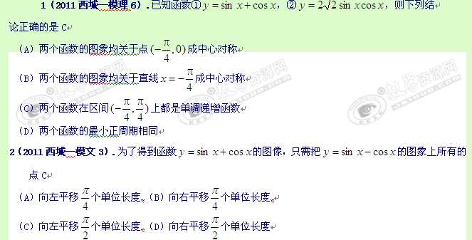 2011年北京市各区一模数学试题分类解析(5):三角函数
