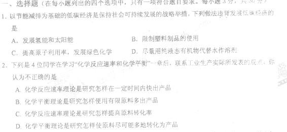 广东省揭阳一中10-11学年高二下学期期中考试(化学)(扫描版不清晰)