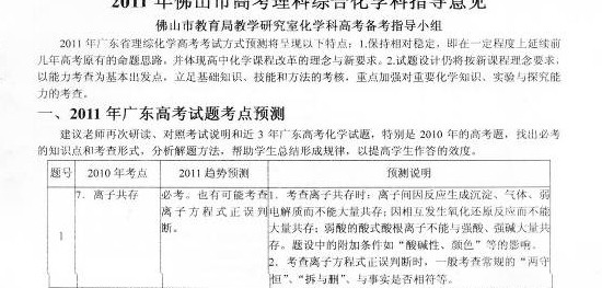 广东省佛山市2011届高三高考考前复习建议(理综化学)扫描版