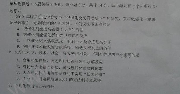 江苏省淮安市盱眙中学10-11学年高二下学期第三次学情调研考试(化学)扫描版