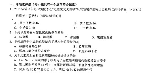 江苏省南京师大附中10-11学年高一下学期期中考试(化学)扫描版