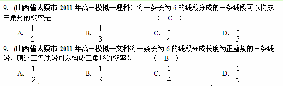 山西省各地市2011年高考最新联考分类汇编(13)概率