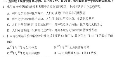浙江省宁波市10-11学年高一下学期期末考试(化学)(扫描版)