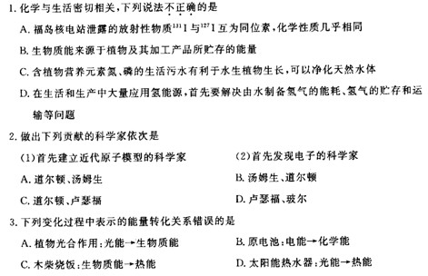 浙江省金华十校10-11学年高一下学期期末试题扫描版(化学)
