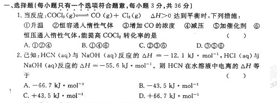 河南省洛阳市10-11学年高二下学期期末质量检测(化学)(扫描版无答案)