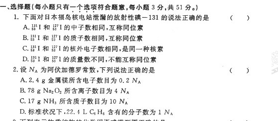 河南省洛阳市10-11学年高一下学期期末质量检测(化学)(扫描版无答案)