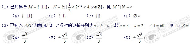 辽宁省丹东市四校协作体2012届高三摸底测试零诊(数学理)