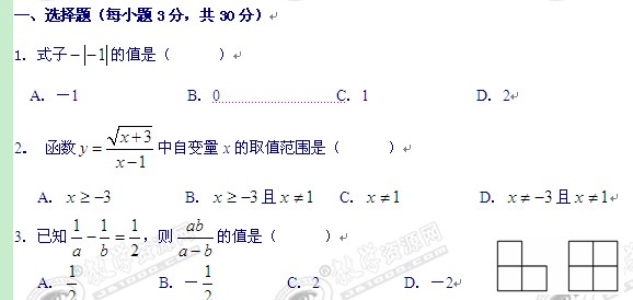 2011年六校教育研究会高一新生入学素质测试(数学)
