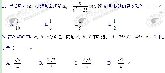 广东省揭阳一中11-12学年高二第一次阶段性测试题(数学理)