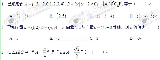 山西省2012届高三上学期第二次阶段性测试题(数学文)