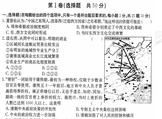 河北省普通高中2012届高三上学期教学质量检测(历史)扫描版