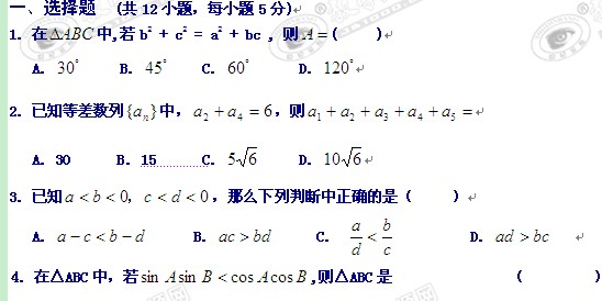 山东省鄄城县第一中学11-12学年高二上学期期中考试(数学)