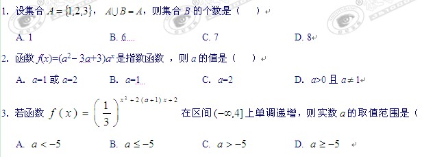 四川省南充高中11-12学年高一上学期期中考试(数学)无答案