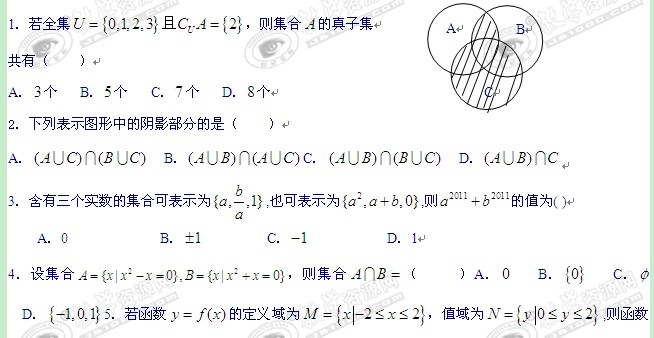 河南省永城实验高中11-12学年高一上学期期中考试(数学)