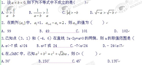 甘肃省兰州市兰炼一中11-12学年高二上学期期中考试(数学)(无答案)