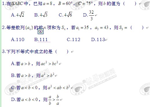 山东省鲁北中学11-12学年高二上学期期中考试(数学)