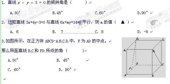 山东济宁微山一中11-12学年高二上学期期中试题(数学文)