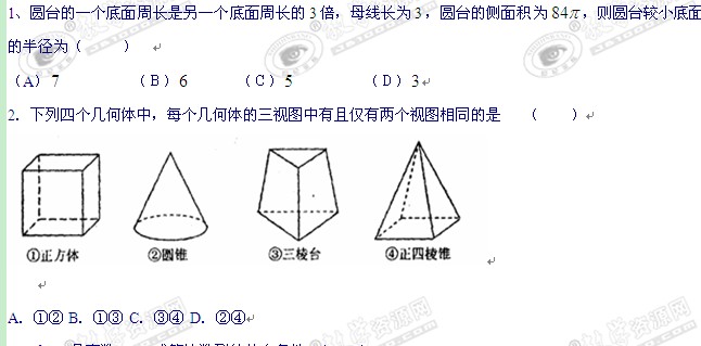 福建省厦门外国语学校2012届高三上学期十一月阶段性检测(数学文)