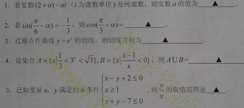 江苏省马坝中学2012届高三上学期期中考试(数学)扫描版