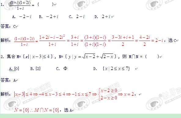 解析卷:广东省深圳高级中学2012届高三上学期第一次测试(数学文)